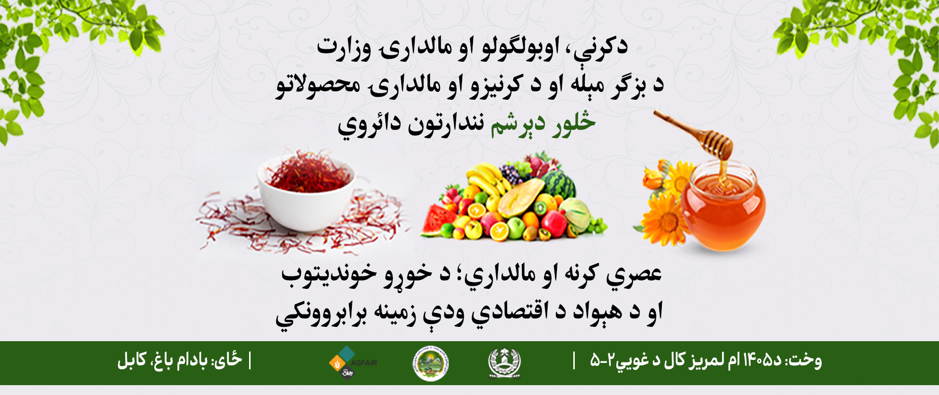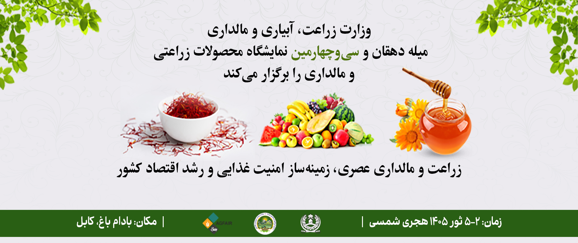 ریاست انکشاف سکتور خصوصی وزارت زراعت، آبیاری و مالداری امارت اسلامی افغانستان از شما دعوت میکند تا در میله دهقان و سیوچهارمین نمایشگاه محصولات زراعتی و مالداری در بادامباغ کابل غرفه. . .